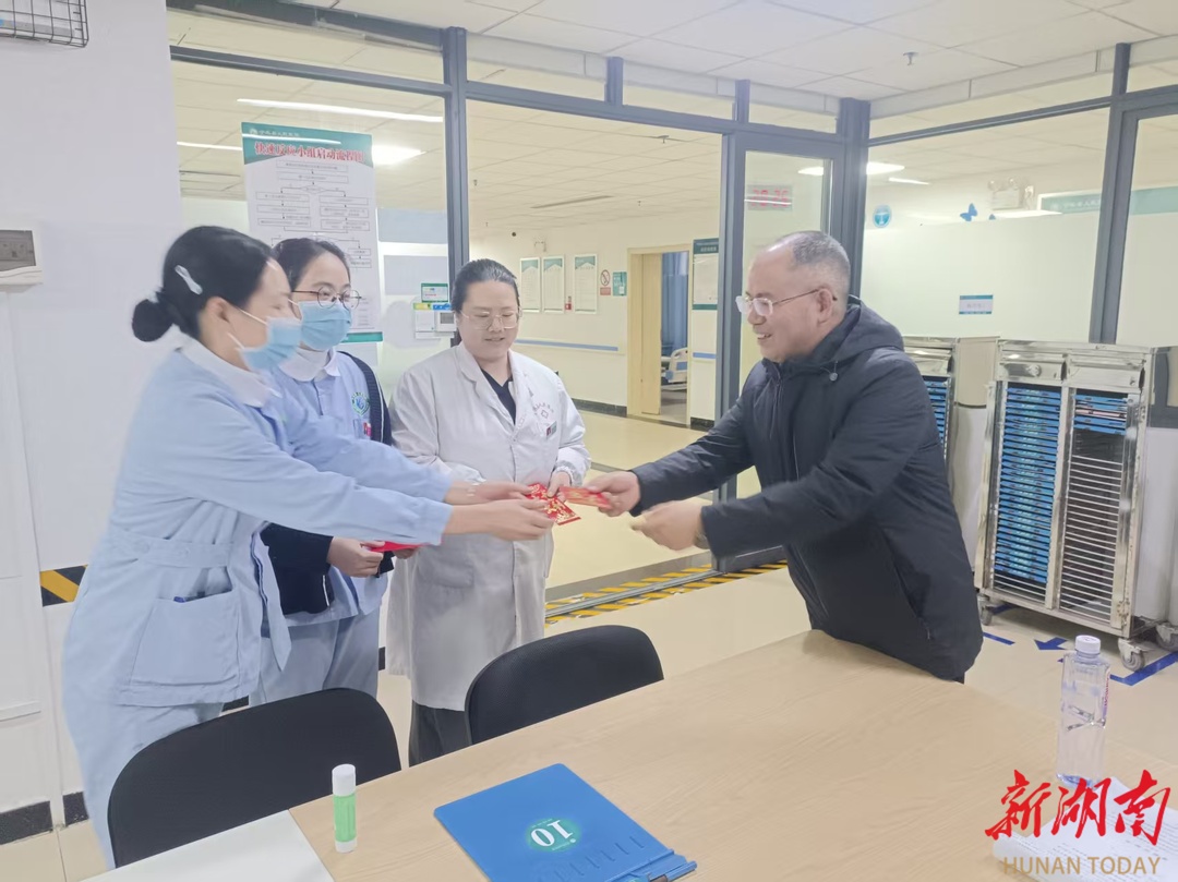 湖南日报·新湖南客户端2月16日讯(通讯员 刘琴)2月16日除夕夜,宁远县人民医院党委书记吴群辉带领医院班子成员、相关职能科室负责人为坚守岗位的员工送上了暖心慰问和新春祝福。