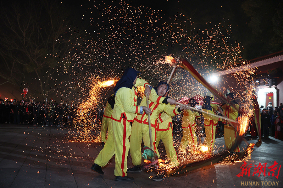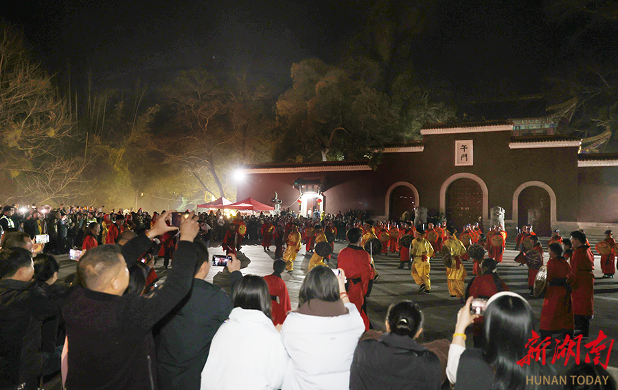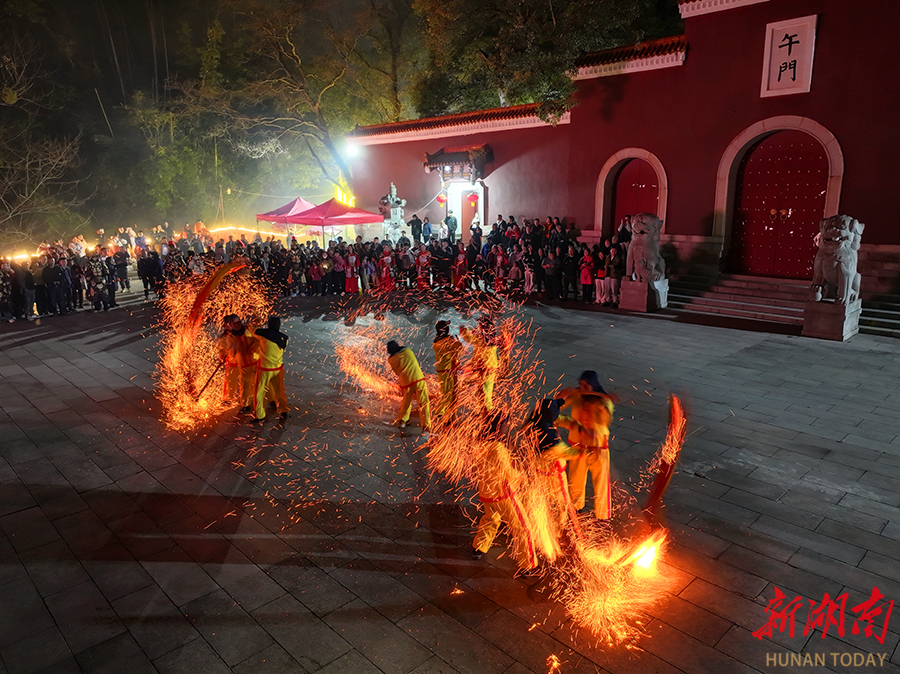 2月15日晚,炎陵县首届民俗庙会核心活动 ——少牢祭祖大型习俗年会在炎帝陵景区举行。活动现场,传统杂技、省级非遗客家藤牌阵等民俗节目轮番上阵,营造出浓厚的春节氛围。 湖南日报全媒体记者 赵持 摄