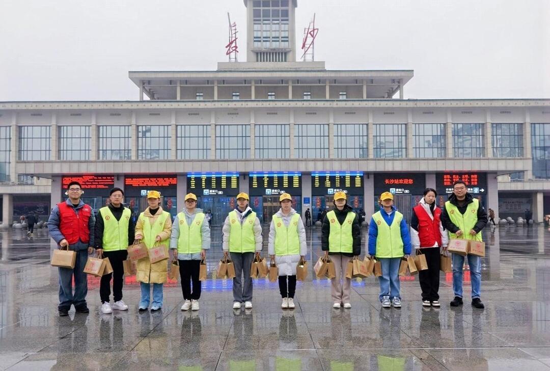 春运客流高峰期,气温持续走低、寒潮频袭,外卖员、网约车司机等新就业群体仍坚守户外服务一线,穿梭在城市的大街小巷,用坚守保障市民出行与日常生活便利,成为寒冬里一道温暖的风景线,但他们的冷暖同样牵动人心。2月10日,长沙民政职业技术学院联合长沙火车站,组织志愿者在车站周边开展“暖‘新’关爱活动”,为坚守一线的新就业群体送去冬日关怀与新春祝福。