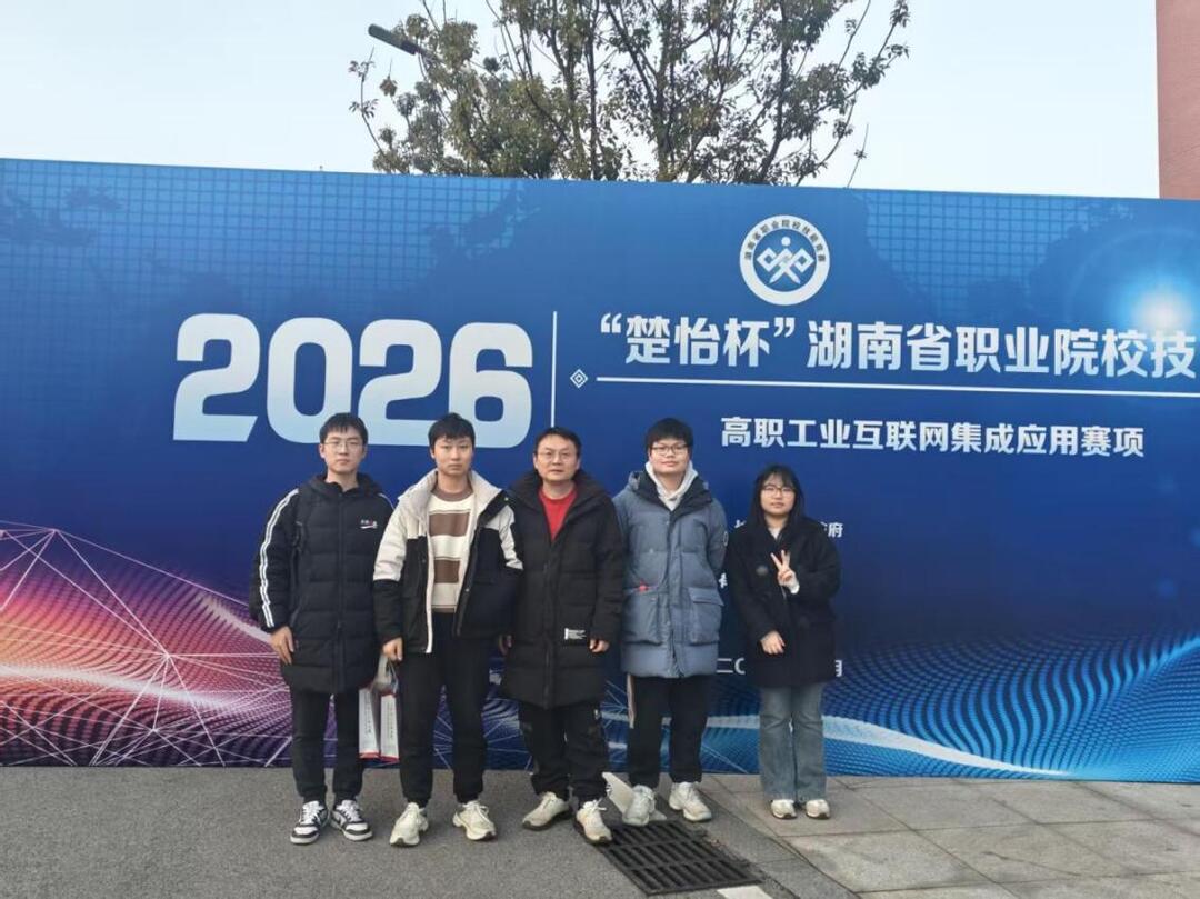 2月3日至5日,2026年度“楚怡杯”湖南省职业院校技能竞赛“工业互联网集成应用”赛项在长沙职业技术学院成功举办。本次比赛共吸引来自全省19所高职院校的35支队伍同场竞技。经过两天激烈角逐,长沙民政职院电子信息工程学院选派的两支参赛队伍在教师阮智斌、黄丽娟、夏关平、彭超洋的指导下脱颖而出,分获二等奖和三等奖。其中,曾旺、罗佳团队荣获二等奖,杨耀辉、任科翰团队获得三等奖。