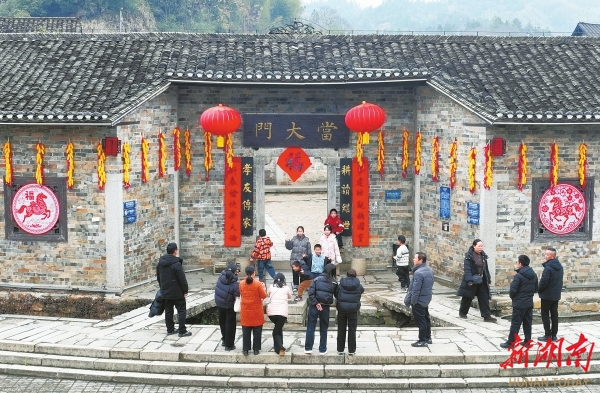 近年来,古村在保护中焕发新韵。“当大门”属村落中枢,明代建筑,形如龙首,内有天井24个、房屋422间,“耕读继世,孝友传家”的门联道出张氏家训;畔溪长廊伴水蜿蜒,连接着古驿道与议事厅,适合漫步拍照;上新屋则化身非遗体验中心,岳州皮影、花鼓戏、剪纸、巴陵青陶等传统技艺在此活态呈现,游客可亲手尝试,沉浸于湘北民艺的魅力之中。