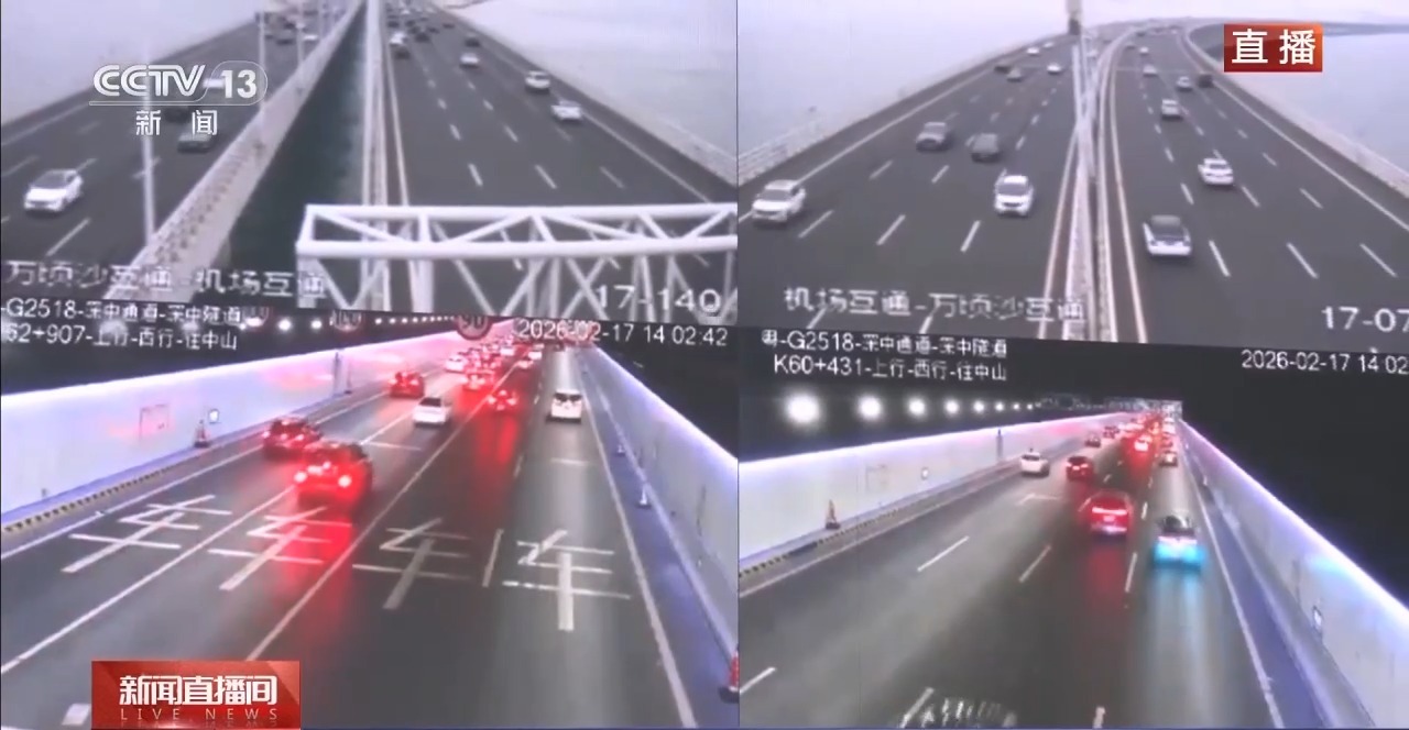 目前,深中通道中山往深圳方向的万顷沙互通至西人工岛隧道口,车流密度明显上升,汇流处有小幅缓行,车流以中短途出游为主,已正式进入增长态势。