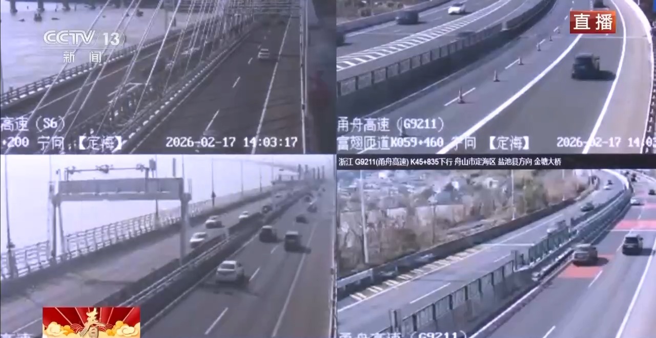 G9211甬舟高速环浙沿海流量增幅显著,核心路段车流密集,正迎来普陀山进香客流的返程与二次进岛车流的叠加小高峰。