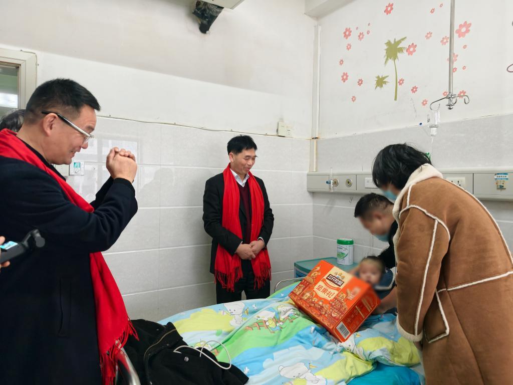 院领导的关怀同样温暖着年幼的患者。在儿科一病区,他们看望了年仅9个月大的患儿峥峥,为他送上精心准备的新年礼物。王澍详细询问孩子的病情和治疗进展,向家长传递医院的关切与祝福:“孩子是家庭的希望,也是社会的未来,我们一定会尽全力守护他的健康。”他叮嘱医护人员要以最温暖的爱心和最专业的技术,陪伴每一个孩子渡过难关。