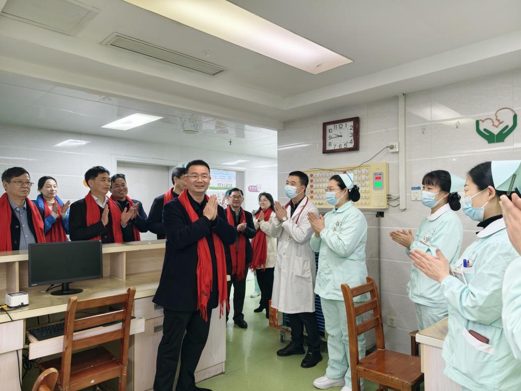 大众卫生报·新湖南客户端2月17日讯(通讯员 梅舒 谭思捷)瑞马奔腾迎新岁,杏林春暖护安康。2月17日,大年初一,娄底市中心医院、广州医科大学附属第一医院娄底医院党委书记王澍率在家院领导及部分职能科室负责人,深入临床一线,亲切慰问春节期间坚守岗位的医护人员,并走访探望住院患者,为他们送去浓浓的新春祝福和暖心的节日问候。