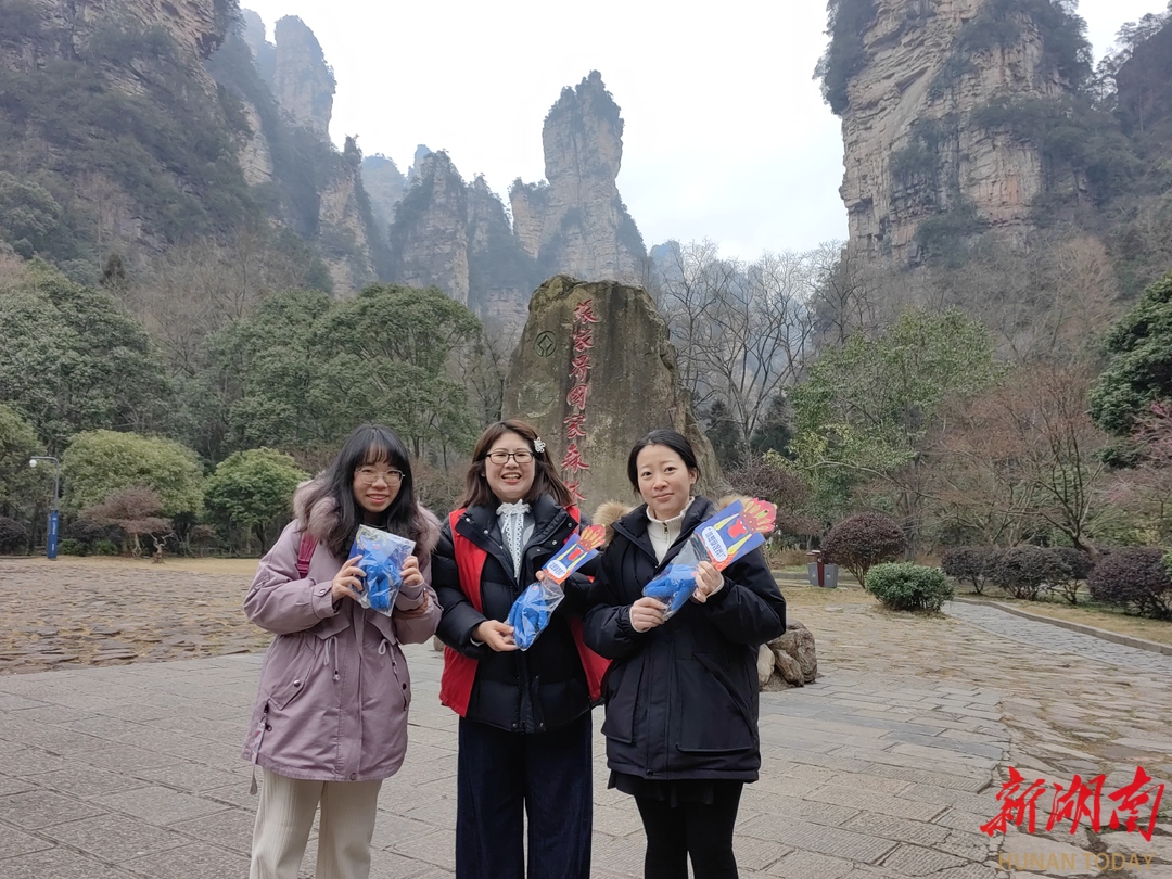 首批游客来自广东、辽宁、江苏、重庆、安徽等地,大家沉醉于张家界雄奇壮观的峰林奇观,对景区精心准备的文创礼物惊喜不已。游客们在游览之余,也纷纷送上新春祝愿,祝福大家新年快乐、马年吉祥。