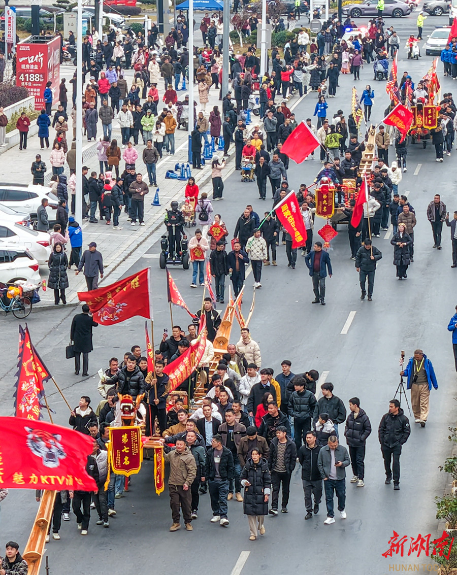 2月17日,道县城区潇水路,群众在观看龙船巡游。大年初一,我省各地举办丰富多彩的民俗活动欢庆新春。 蒋克青 摄(湖南图片库)