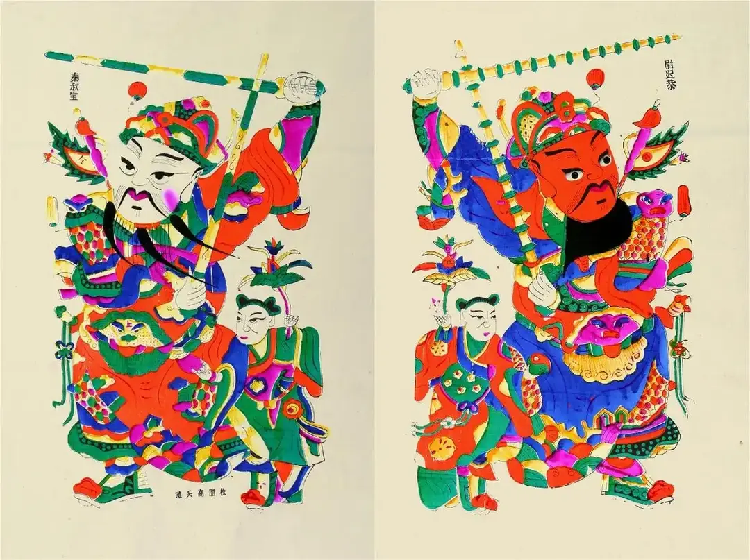 滩头年画作品:“门神”尉迟恭、秦叔宝。图片来源:中国日报网​