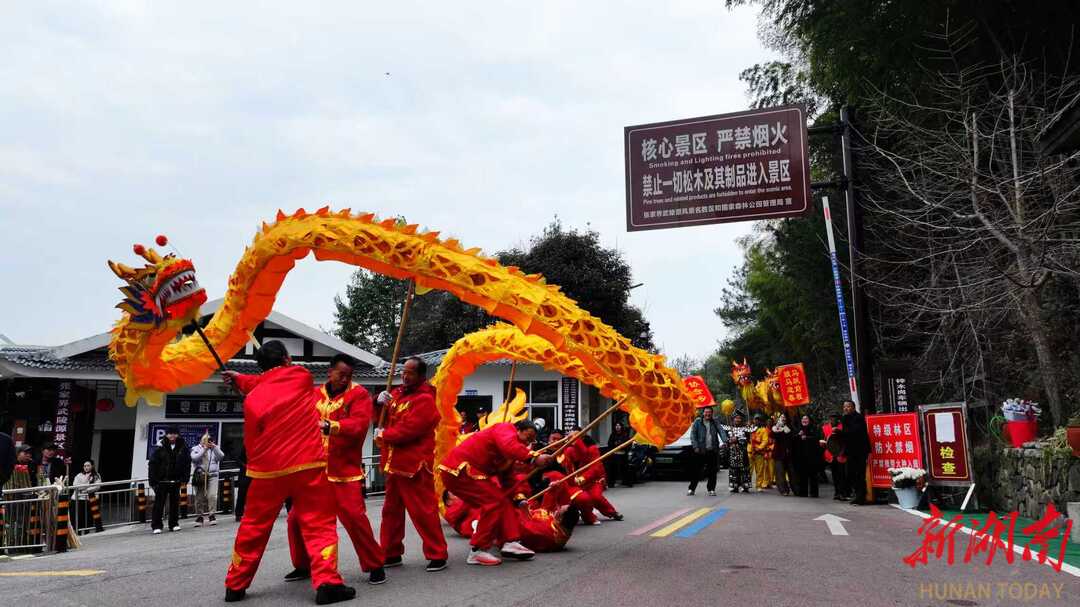 巡游队伍从党群活动中心出发,沿最美农村公路缓缓前行到张家界国家森林公园中门。祥龙盘旋升空、摆尾穿梭,铿锵鼓点应和着群众喝彩,沿途游客纷纷驻足,举着手机记录热闹瞬间,不少人主动加入队伍,与村民一同挥舞龙灯,中外游客的笑声、锣鼓声,在山谷间久久回荡。