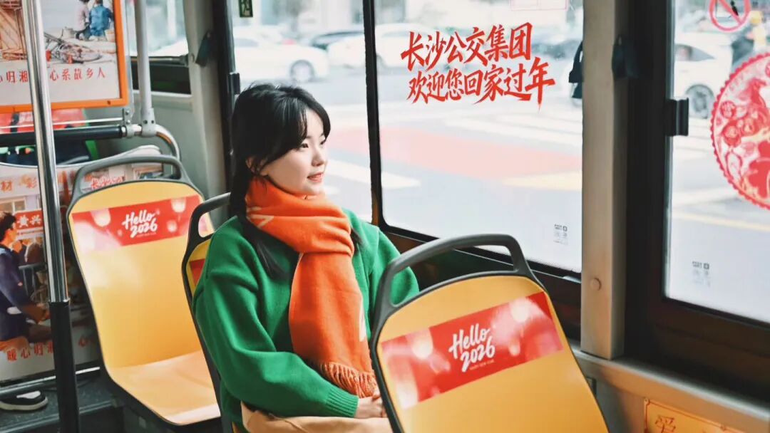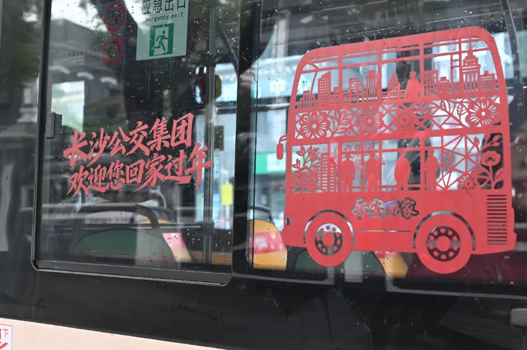 车窗上贴了福字,车厢顶吊着中国结——今年长沙公交有“年味公交”的主题,司机说,每辆车都妆点过了。前挡风玻璃下还压着一枚小小的红色剪纸,蛇盘成如意结。2026是丙午马年,这蛇剪纸大约是去年剩下的,司机舍不得扔,说吉利。我便也信了。