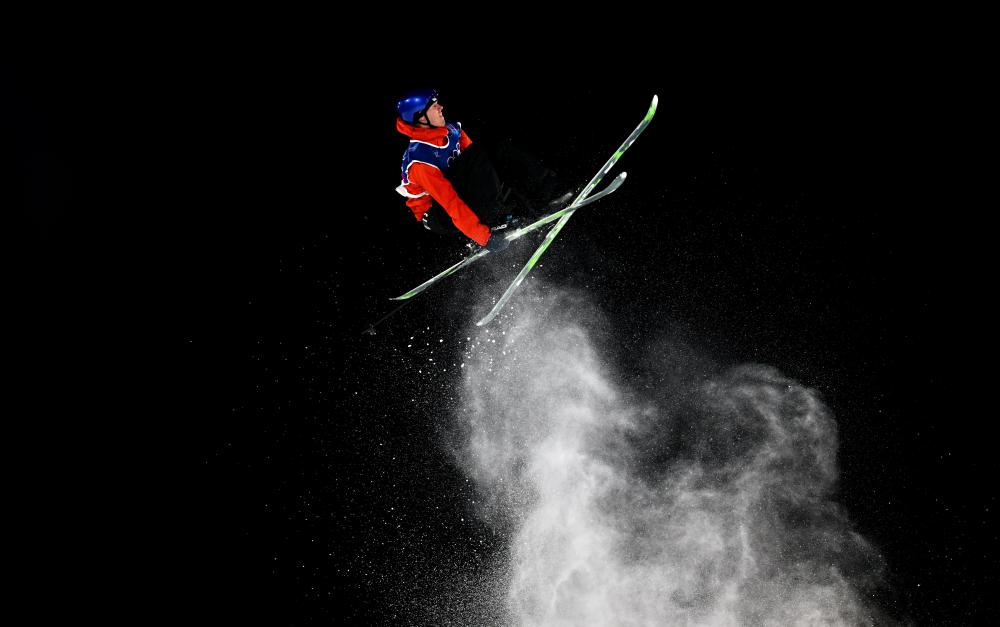 2月15日,新西兰选手哈林顿在自由式滑雪男子大跳台资格赛中。新华社记者 夏一方 摄