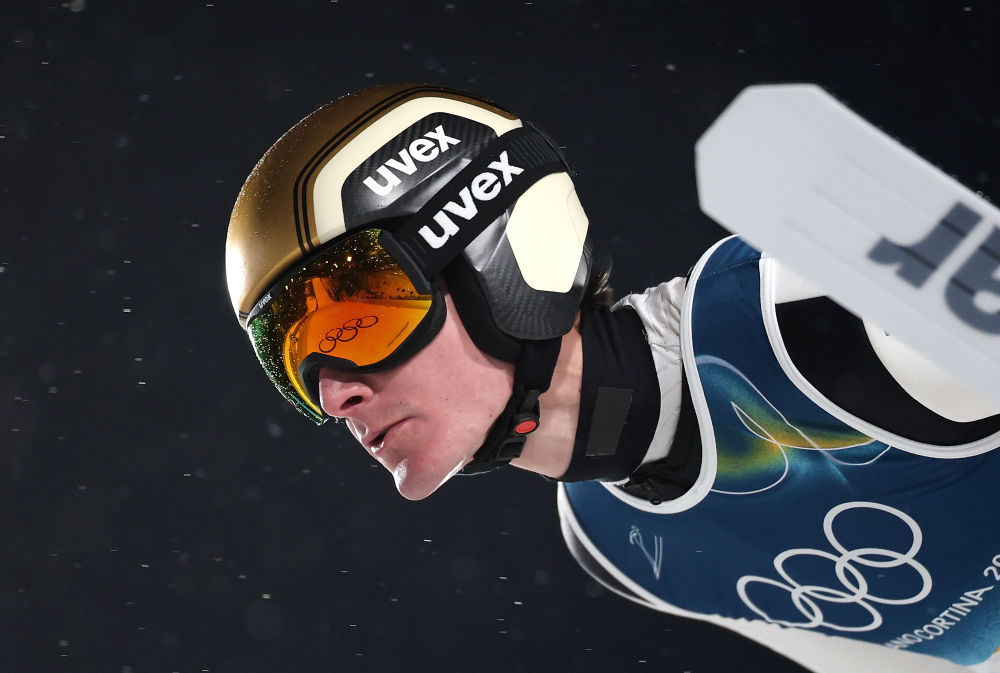 2月14日,斯洛文尼亚选手多门·普雷夫茨在跳台滑雪男子个人大跳台比赛中。新华社记者 黄伟 摄