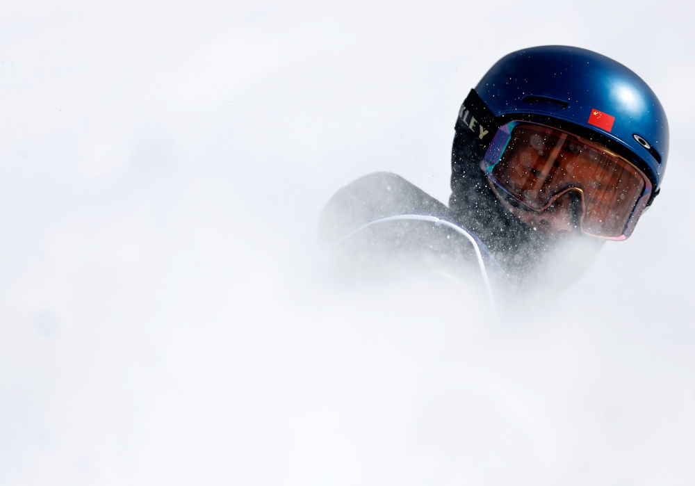 2月12日,意大利选手索马里瓦在单板滑雪男子障碍追逐赛中。新华社记者 邬惠我 摄