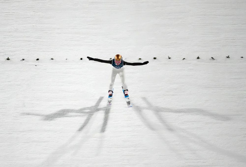 2月15日,斯洛文尼亚选手普雷夫茨在跳台滑雪女子个人大跳台比赛中。新华社记者 黄伟 摄
