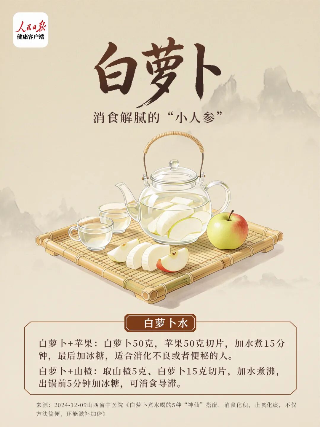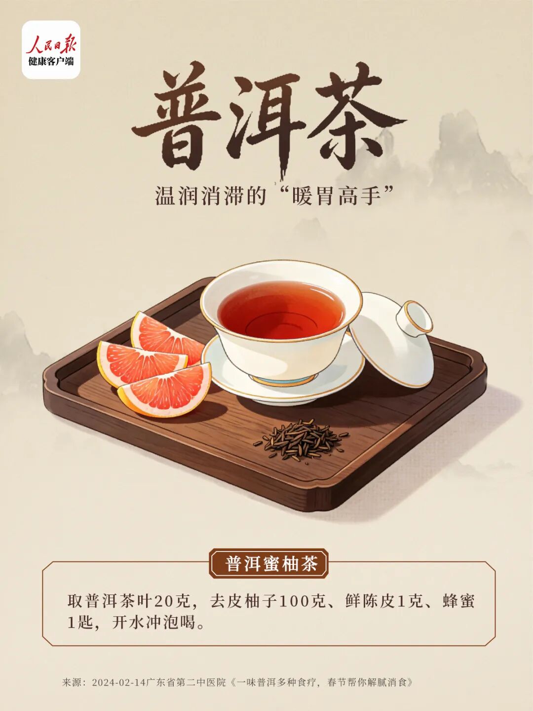 中医认为,山楂味酸甘,擅长消食化积。北京中医药大学东直门医院消化科副主任医师刘大铭在健康时报曾刊文介绍,山楂对油腻肉食之积,效果非常明显。①中医认为,年糕、饺子、米饭等主食吃多了,感觉肚子沉甸甸不消化?一杯焦香的大麦茶能帮你。湖南中医药大学第一附属医院治未病中心主任医师李定文在健康时报曾刊文介绍,大麦茶具有益气调中、助消化的作用,特别适合淀粉类食物(米、面、糕点)摄入过多的情况。①普洱茶有消滞解腻作用。广东省第二中医院治未病中心主任中医师林晓洁在该院公众号曾刊文介绍,普洱茶在发酵过程中,分解产生大量衍生物,使胃对蛋白质食物的消化能力加强。中医认为其性温,有温养脾胃、消滞解腻和利湿的作用。③陈皮香气独特,能刺激胃液分泌。山西省中医院代谢病科医师安婷在该院公众号曾刊文介绍,陈皮所含的挥发油对胃和肠道有刺激作用,可以使胃液分泌增加,恢复食欲。④海鲜性寒,吃多了易胃寒腹胀。湖南中医药大学第一附属医院治未病中心主任医师李定文在健康时报曾刊文介绍,紫苏叶性温,温可散寒、行气宽中,还能温散气血。①白萝卜有“小人参”之称,能下气、助消食。山西中医学院附属医院治未病中心主治医师芦玥在健康时报曾刊文介绍,白萝卜对许多胃肠动力障碍所致的消化不良疾病,有明显的缓解作用。吃了过多肉类等油腻食物导致的难消化、腹胀等,喝点白萝卜水是简单有效的办法。⑥广州中医药大学第一附属医院心血管科医师廖伟灿在该院公众号曾刊文介绍,柠檬有着生津解暑、健胃消食、疏肝解郁之效。精神不振的时候,喝一杯柠檬水,其清新酸爽的味道不但能开胃,还有助于提神醒脑。⑧马蹄,学名荸荠,清甜多汁,是一种食药兼具的蔬菜。广东省中医院脾胃病科主任医师黄穗平在个人公众号曾刊文介绍,马蹄入胃经,还富含膳食纤维和天然酵素,能帮助消化、疏通积滞。不消化易上火时,马蹄能帮助脾胃恢复轻盈运转。⑨