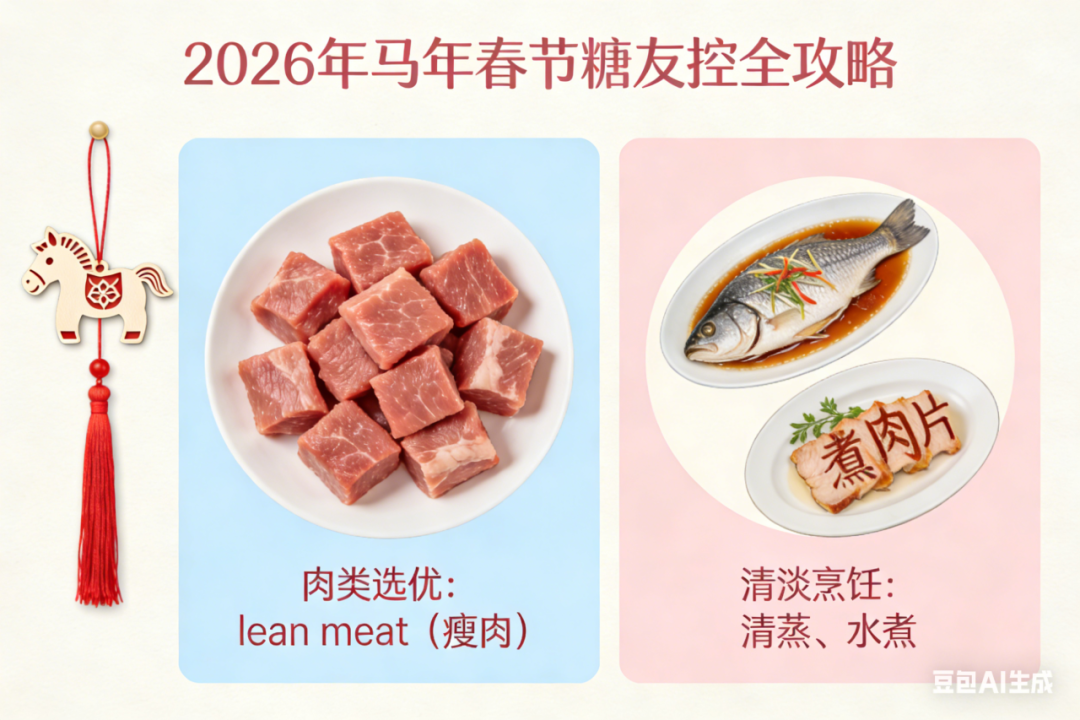 对于糖尿病患者而言,节日期间的饮食、作息和运动规律容易被打乱,血糖波动风险随之增加。如何既能享受团圆之乐,又能平稳度过佳节?下面,临床营养科为您送上一份详细的春节控糖指南。