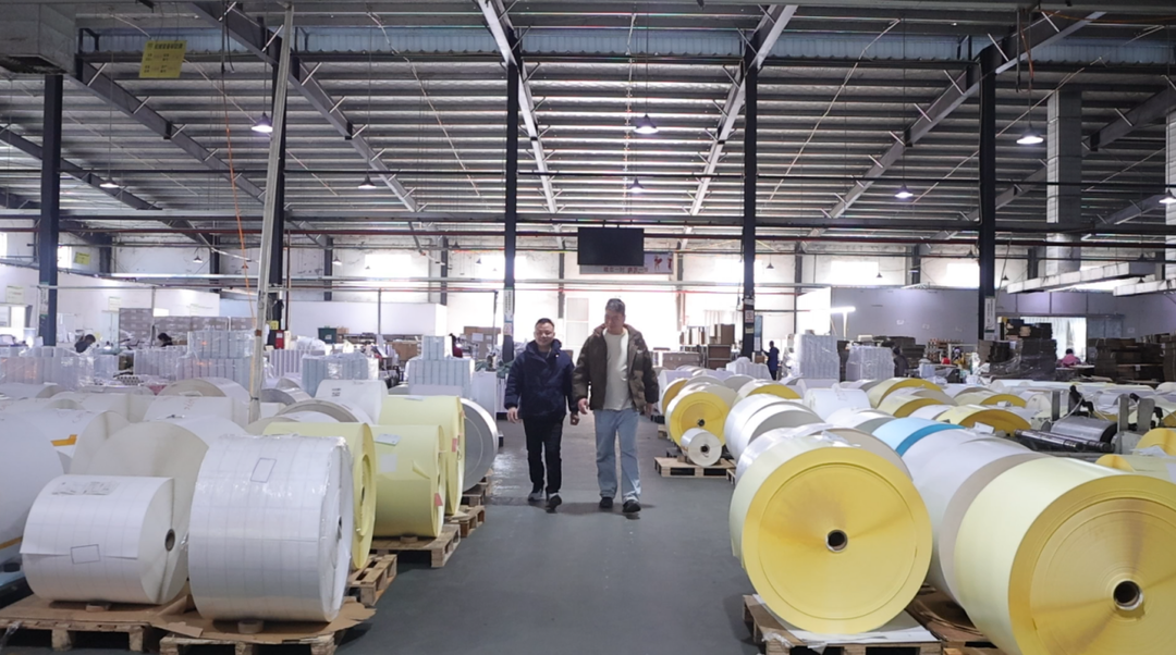 走进九恒数码生产车间,自动化印刷、分切、打包设备高速运转,工人们规范操作、各司其职,一派繁忙有序的生产景象。作为全国规模领先的快递面单生产企业,九恒聚焦快递物流应用材料主业,主要生产电子面单、条码单据等核心产品,今年订单同比增长15%—20%。企业快速响应市场需求,在正月初二率先恢复两个关键车间生产,确保订单按期交付。