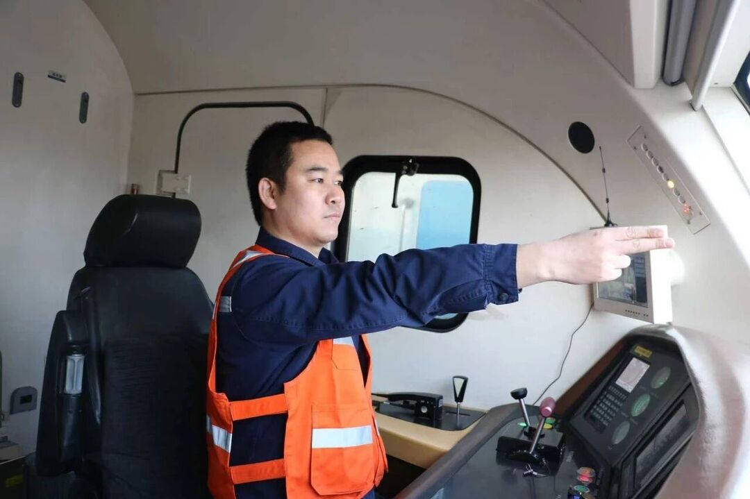 王鹏鹏正在进行列车驾乘作业。
