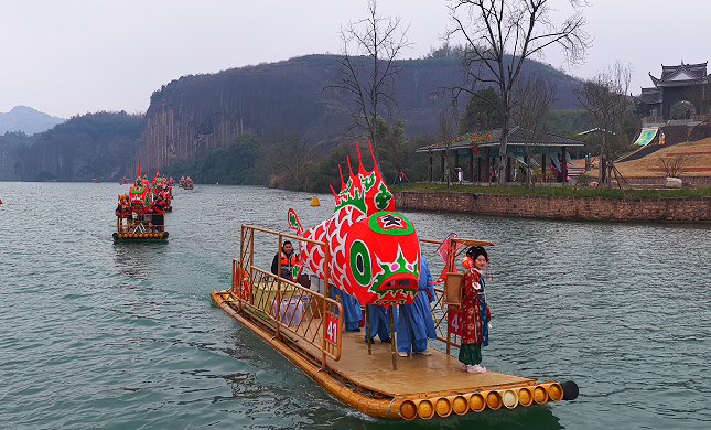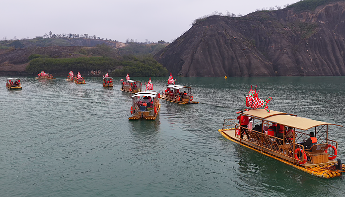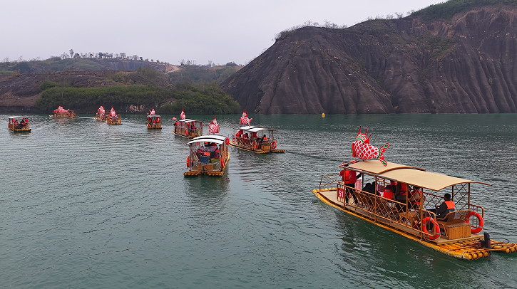 今年春节,飞天山翠江旅游区以九龙水寨水上体验为核心,打造“游回翠江做锦鲤”新春游园会,从初一至初六推出实景湘昆、非遗鱼灯巡游等系列活动,将非遗与新春民俗深度融合,让游客在游丹霞、赏美景的同时,感受传统文化的魅力,收获新春好运气。