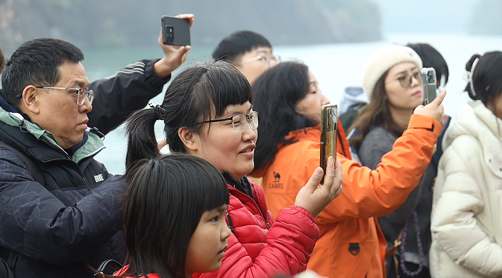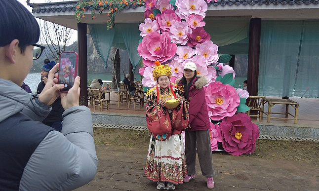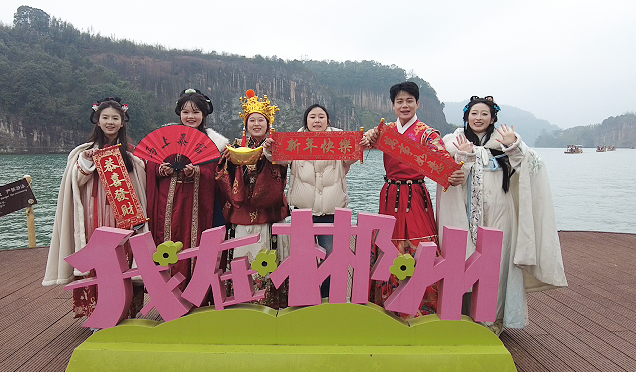伴随着欢声笑语,游客们驻足打卡拍照、踊跃参与互动,在碧水丹霞间定格新春美好瞬间,齐声喊出对新一年的美好期许与祝福。
