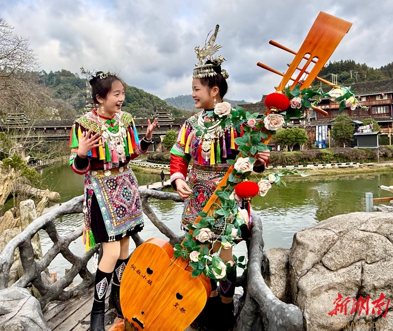 2月20日,通道侗族自治县坪坦乡皇都村,游客在侗族琵琶展示区打卡。春节假期,该县推出“非遗贺新春 寻味中国年”主题活动,通过多元场景与沉浸式体验,为游客呈现了一场融合传统年味与侗族文化特色的新春盛会。陈俊宇 摄(湖南图片库)