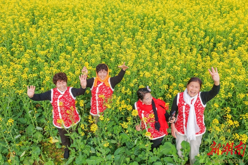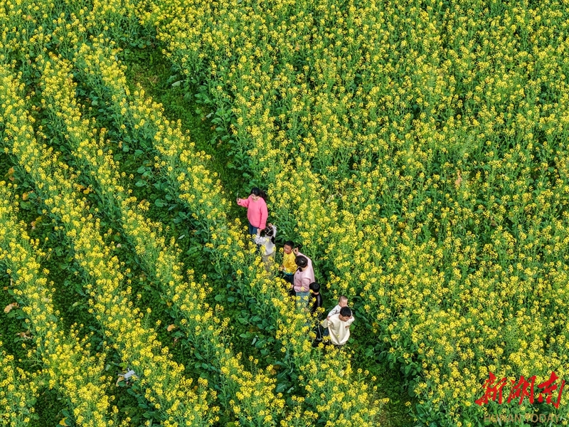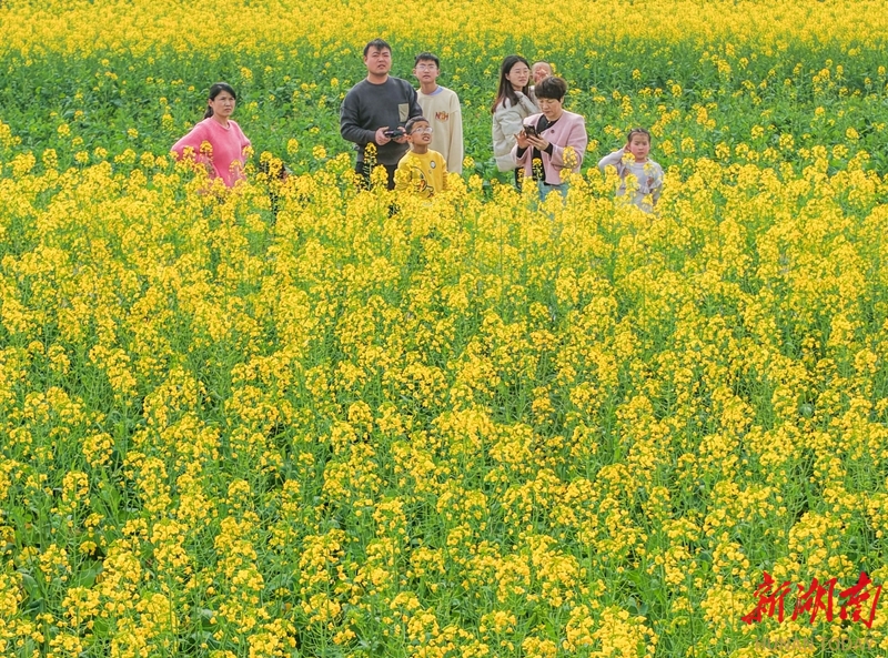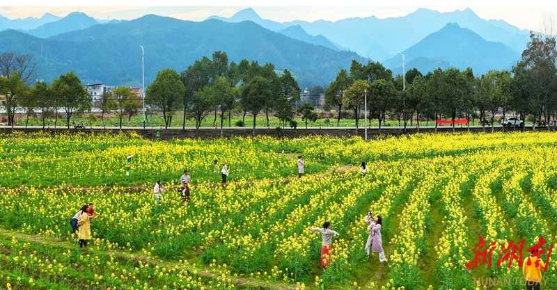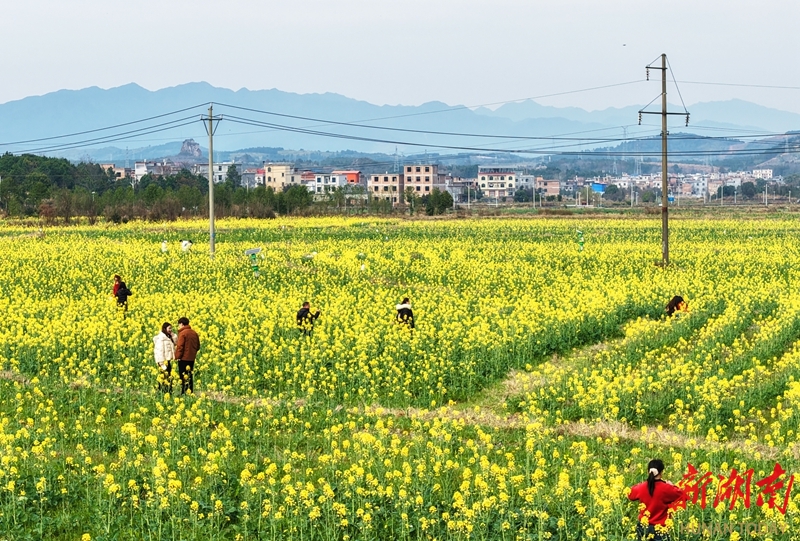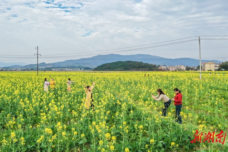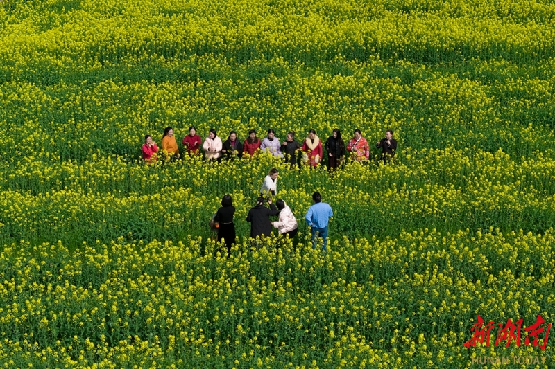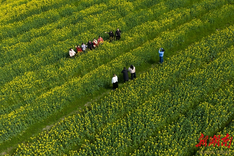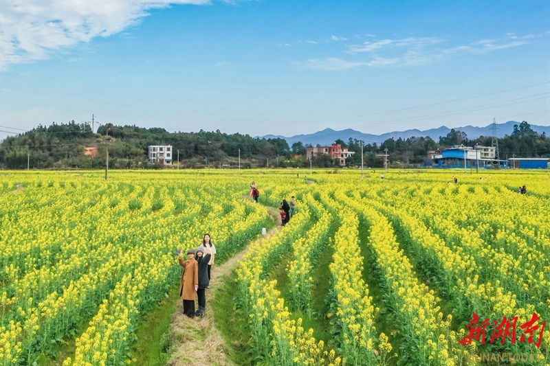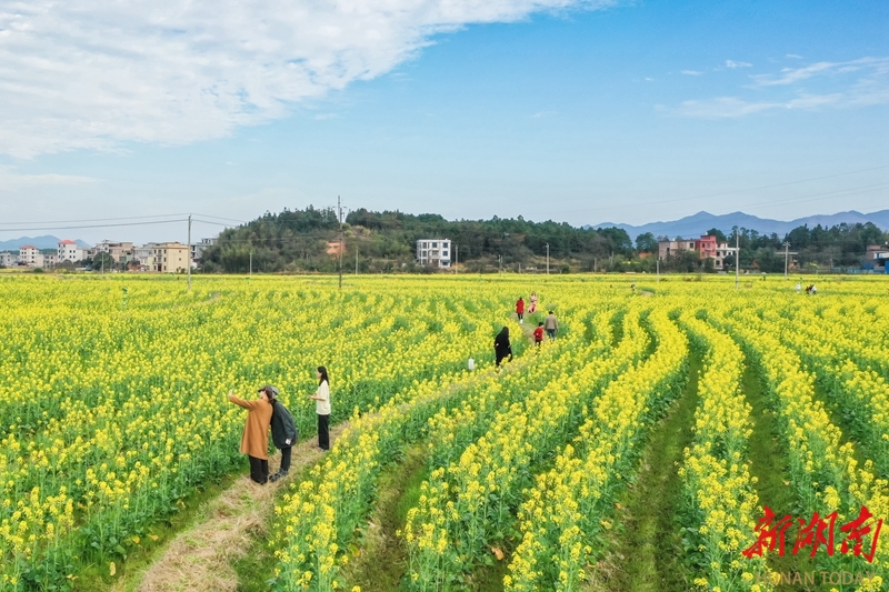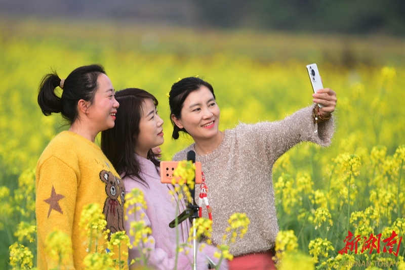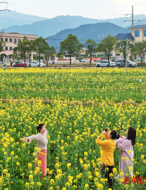 2月20日,蓝山县塔峰镇社门村,游客在赏花拍照。时下,当地种植的油菜花迎春绽放,吸引不少游客前来赏花游玩。彭华 摄(湖南图片库)