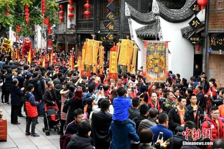 图为福州南后街万人空巷观看迎财神民俗活动。王东明 摄