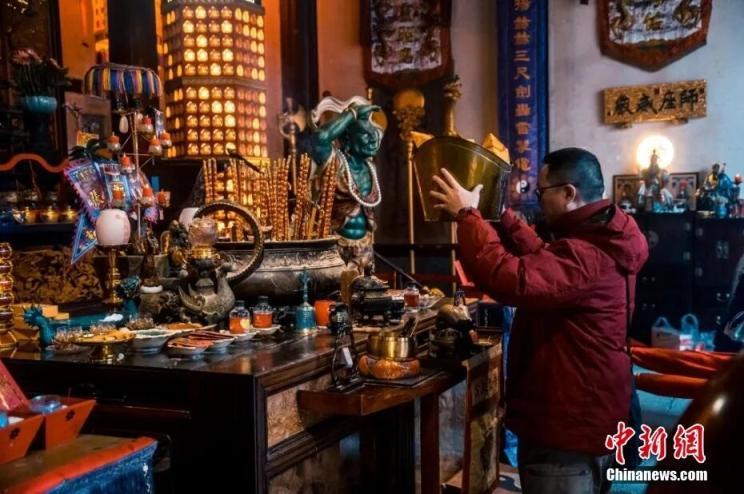 图为在上海财神庙,民众前来烧香祈福“拜财神”。殷立勤 摄