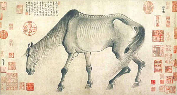 历史丹青中,马多是盛世的注脚、昂扬的魂魄。韩幹笔下的丰腴厩马尽显太平气象,郎世宁的骏马融汇东西更显昂扬,徐悲鸿笔下的奔马承载奋进之志。但我却偏爱宋末元初龚开的《骏骨图》。