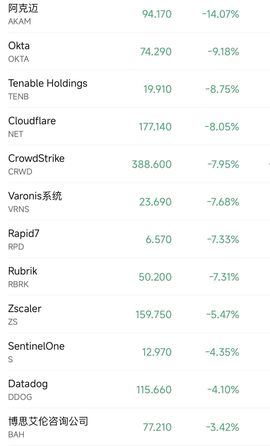 多只网络安全股暴跌