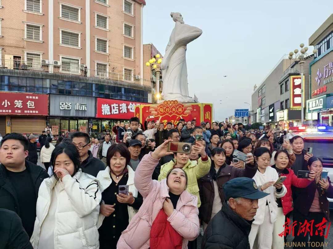 随着摆龙环游等传统仪式的完成,2026马年营田灯会迎春祈福活动正式启幕。七大特色巡游方阵从区办公楼花园路出发,沿屈汨路、屈原中学、橘颂路,最终汇聚于屈子诗园,串联起屈原文化的精魂与地域生活的浓郁烟火气。40名少儿轮滑队员手持“哪吒闹海”主题灯牌滑过,展示传统文化与青春力量的激情碰撞;开篇方阵8匹骏马踏过,20盏复古马灯暖光摇曳,将祝福点亮在灯火之间。乡镇方阵各具特色,一乡一品讲述故里风情:营田镇方阵带来“精忠报国”台故事;河市镇方阵以“故里情怀”台故事诉说着对这片土地的深厚柔情……一路行来一路看,满街尽是烟火温情。