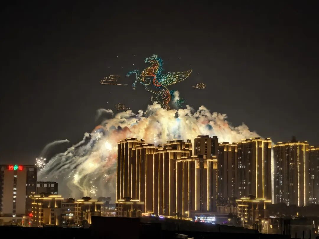 晚会融合高科技无人机矩阵与艺术化定制焰火