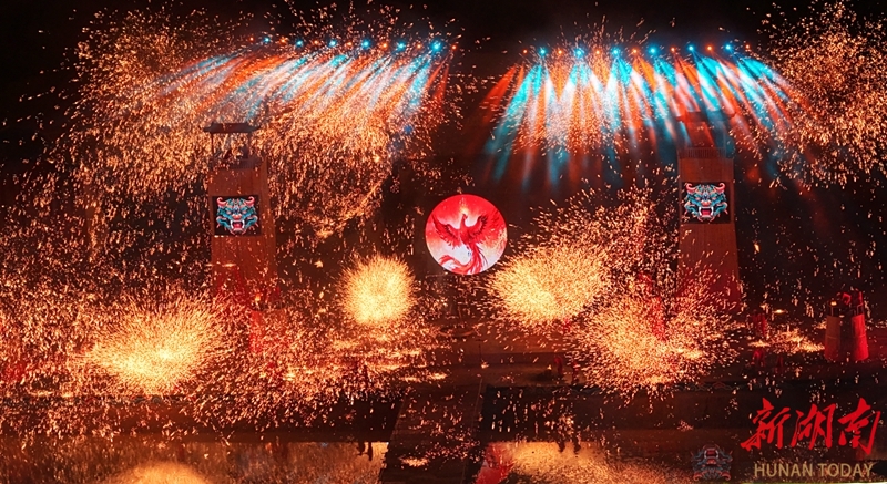 2月20日晚,衡阳市南岳区时光之城·1944景区,民间艺人在表演打铁花。春节假期,该区举办丰富多彩的民俗活动,为游客带来了充满传统韵味的新春体验。曹正平 文兰 摄影报道(湖南图片库)