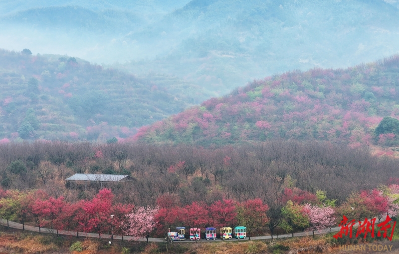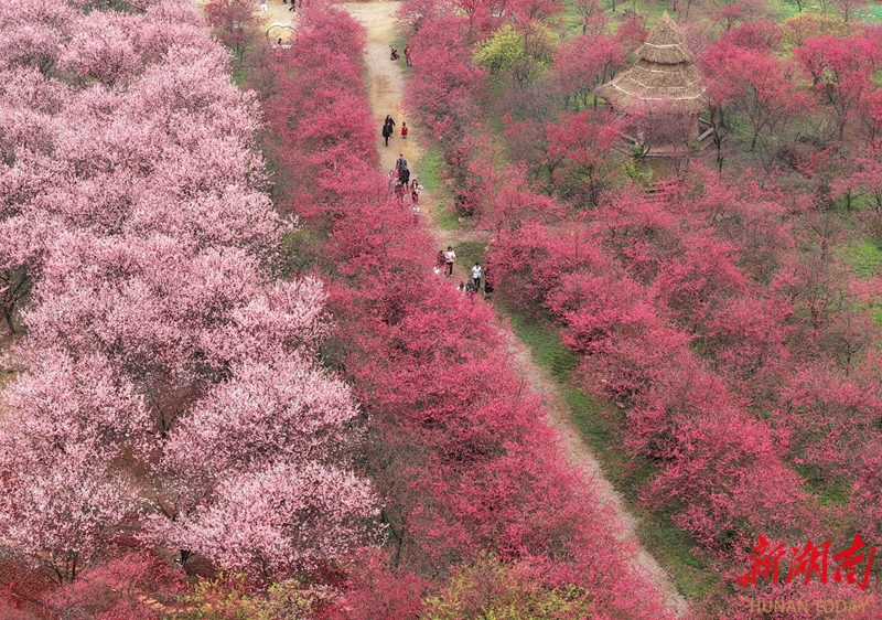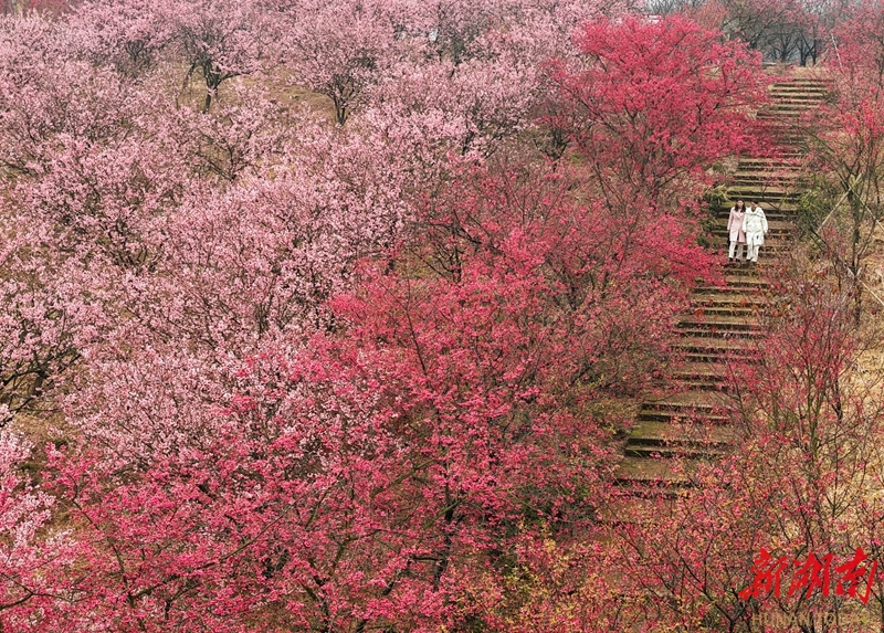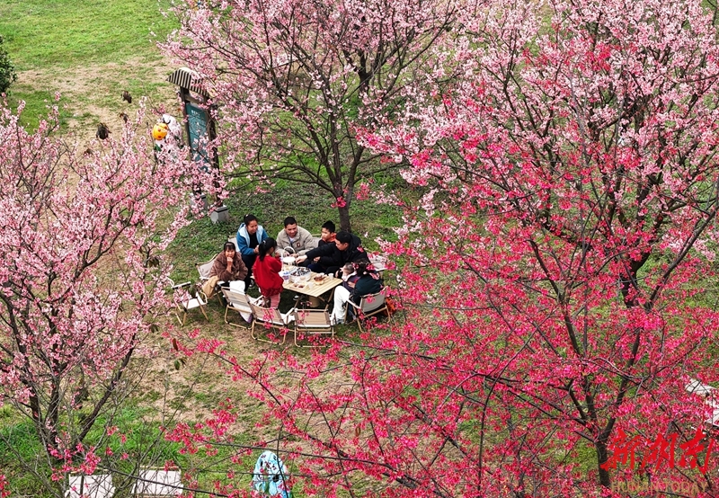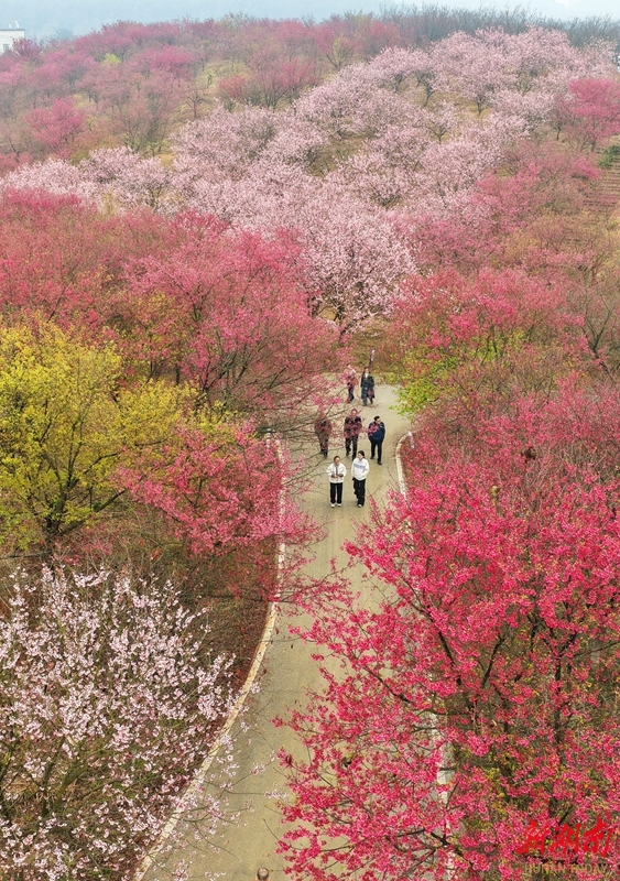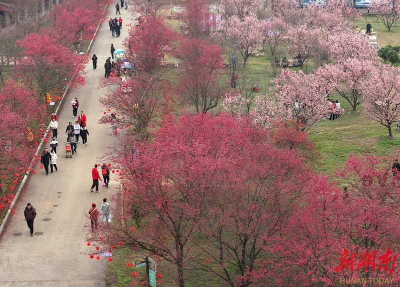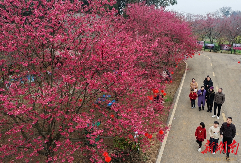 2月21日,游客在常宁市罗桥镇百万樱花园赏花踏青。近期,该园各色樱花迎春盛放,游客漫步其间,尽享春日美景。曹正平 郭华 摄影报道(湖南图片库)