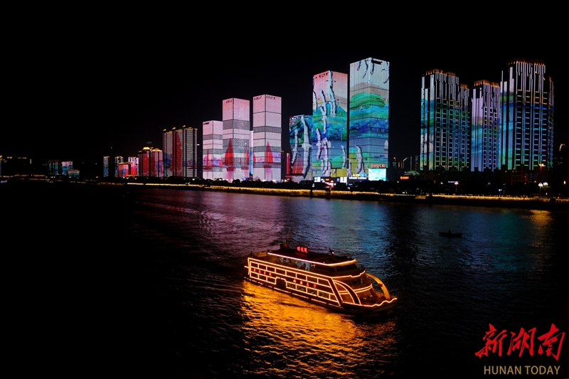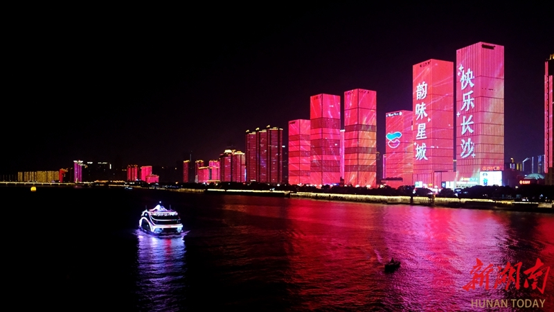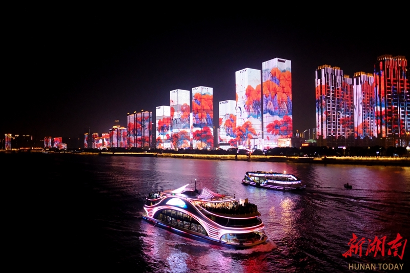 2月20日晚,游客乘坐游轮,观赏长沙“一江两岸”灯光秀。绚丽的城市夜景与节日灯光交相辉映,为市民游客带来独特的春节夜游体验。林道辉 摄(湖南图片库)