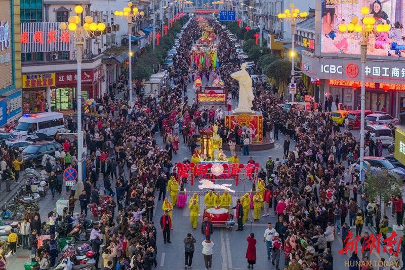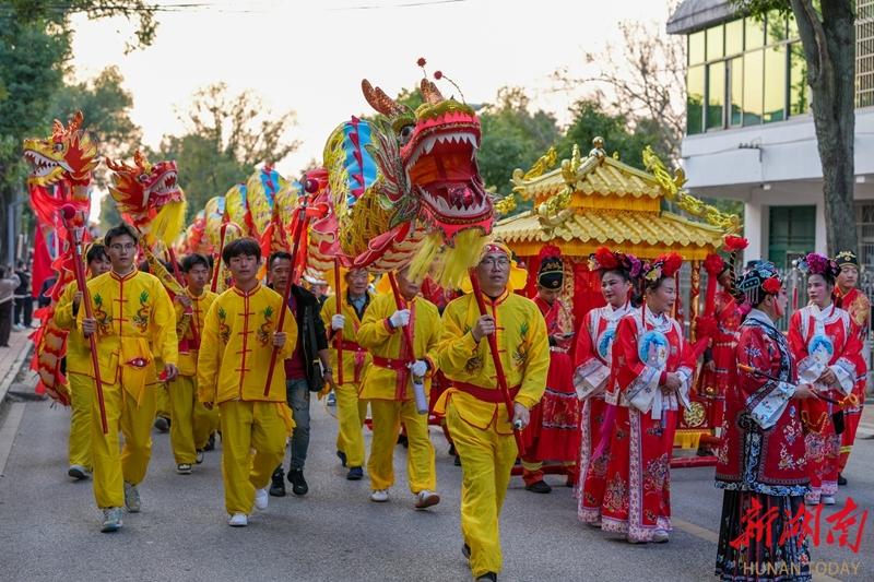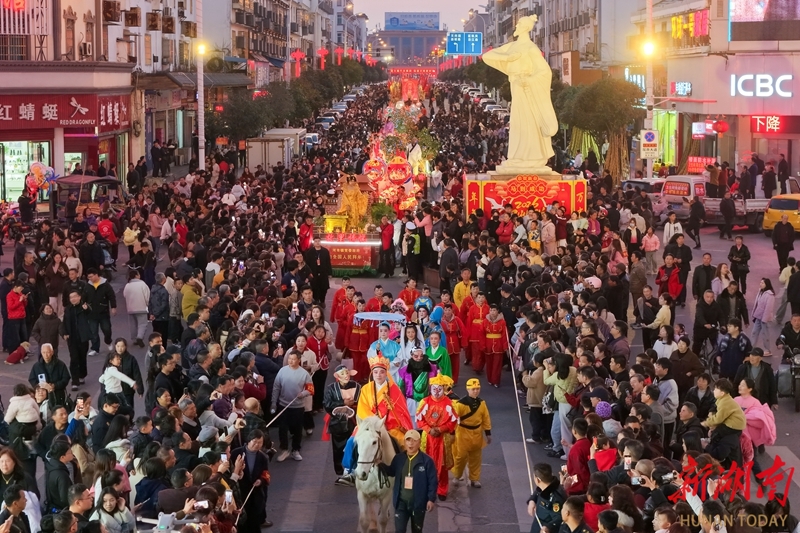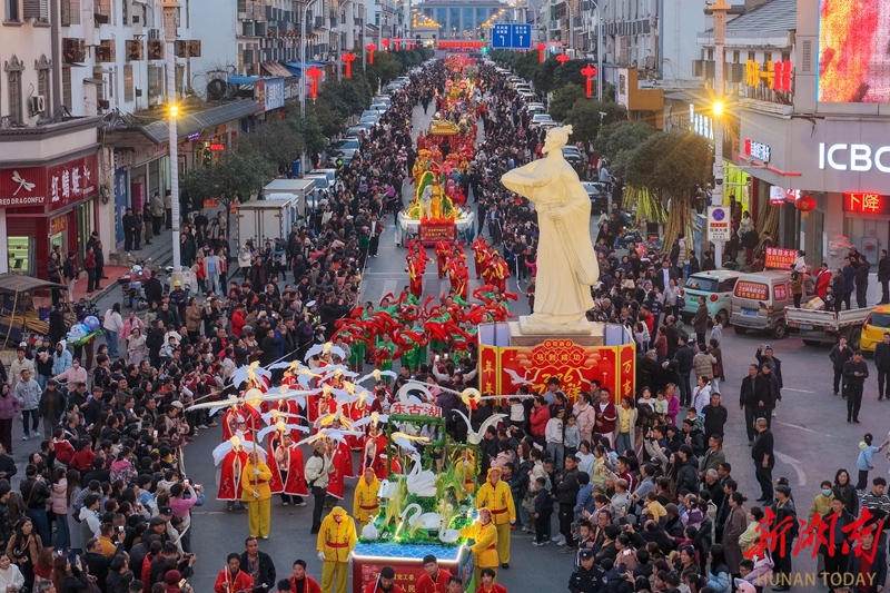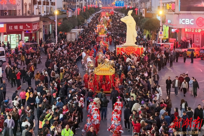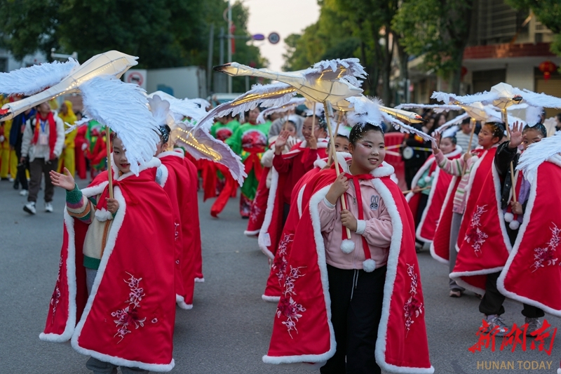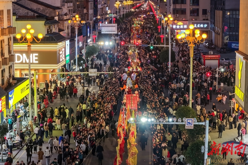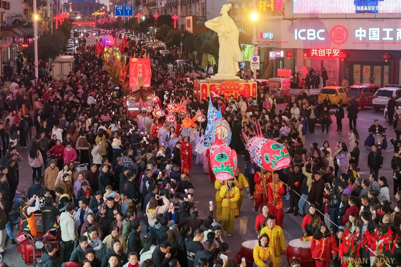 2月21日,正月初五,岳阳市屈原管理区举行营田灯会系列活动,花灯、舞龙等展演巡游精彩纷呈,吸引众多市民游客驻足观赏,现场洋溢着喜庆的节日氛围。宋政军 摄(湖南图片库)