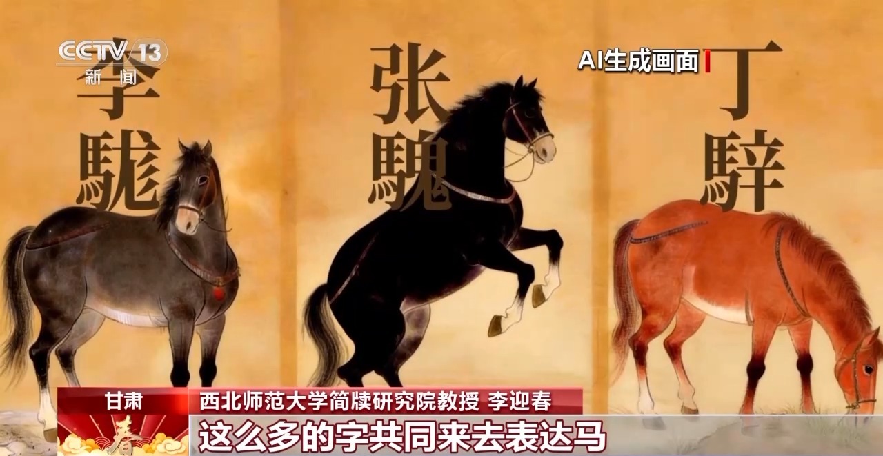 西北师范大学简牍研究院教授 李迎春:像红马,它一般就叫作“骍”。这么多的字共同来表达马,也说明了我们古人对马的这样一种感情和喜爱。