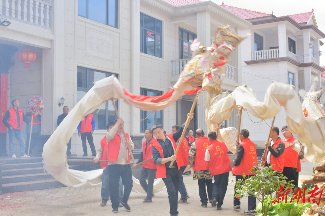 湖南日报·新湖南客户端2月22日讯(通讯员 李海英 王姝)龙腾盛世,福满新居。2026年新春伊始,在双峰县杏子铺镇醴娄高速拆迁户集中安置点——中兴村安置区内,一场热闹非凡的舞龙灯祈福活动火热上演。在此安居的拆迁户们自发组织,以传承千年的民俗方式,表达乔迁新居的喜悦,祈愿更加幸福美满的未来。