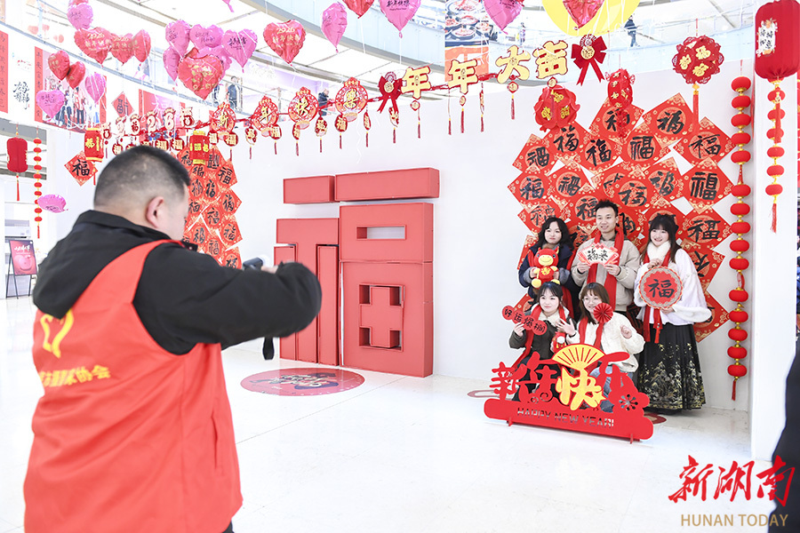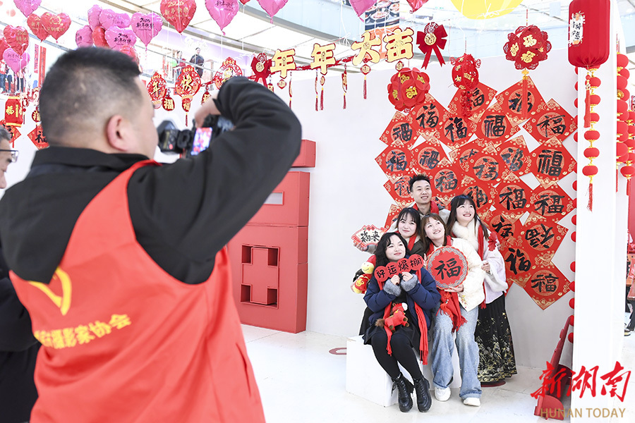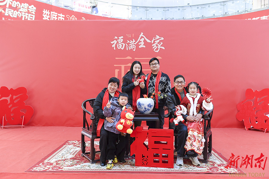 2月22日,娄底市娄星区万豪城市广场,摄影志愿者在为市民拍摄全家福。春节假期,娄底市摄影家协会开展摄影惠民活动,组织20名摄影志愿者为市民免费拍摄全家福,用镜头定格团圆时刻。吴永华 摄(湖南图片库)