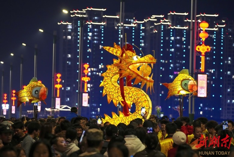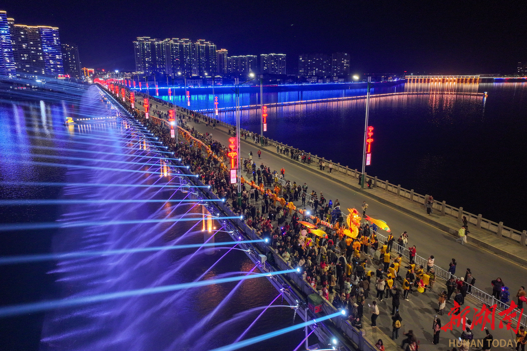 2月21日晚,农历正月初五,澧水河畔流光溢彩、万人空巷,第四届慈利板板龙灯艺术季核心主题活动璀璨上演。