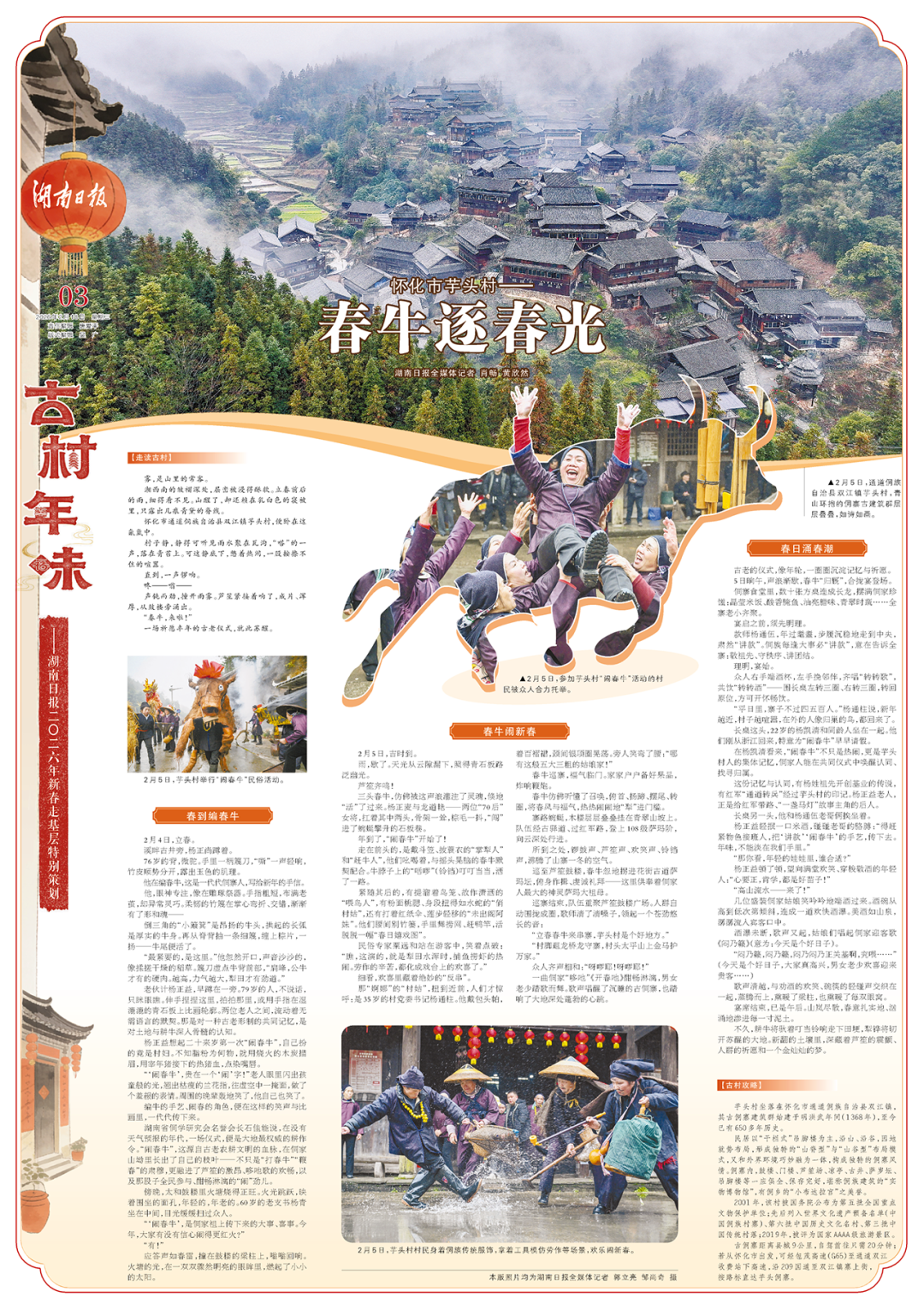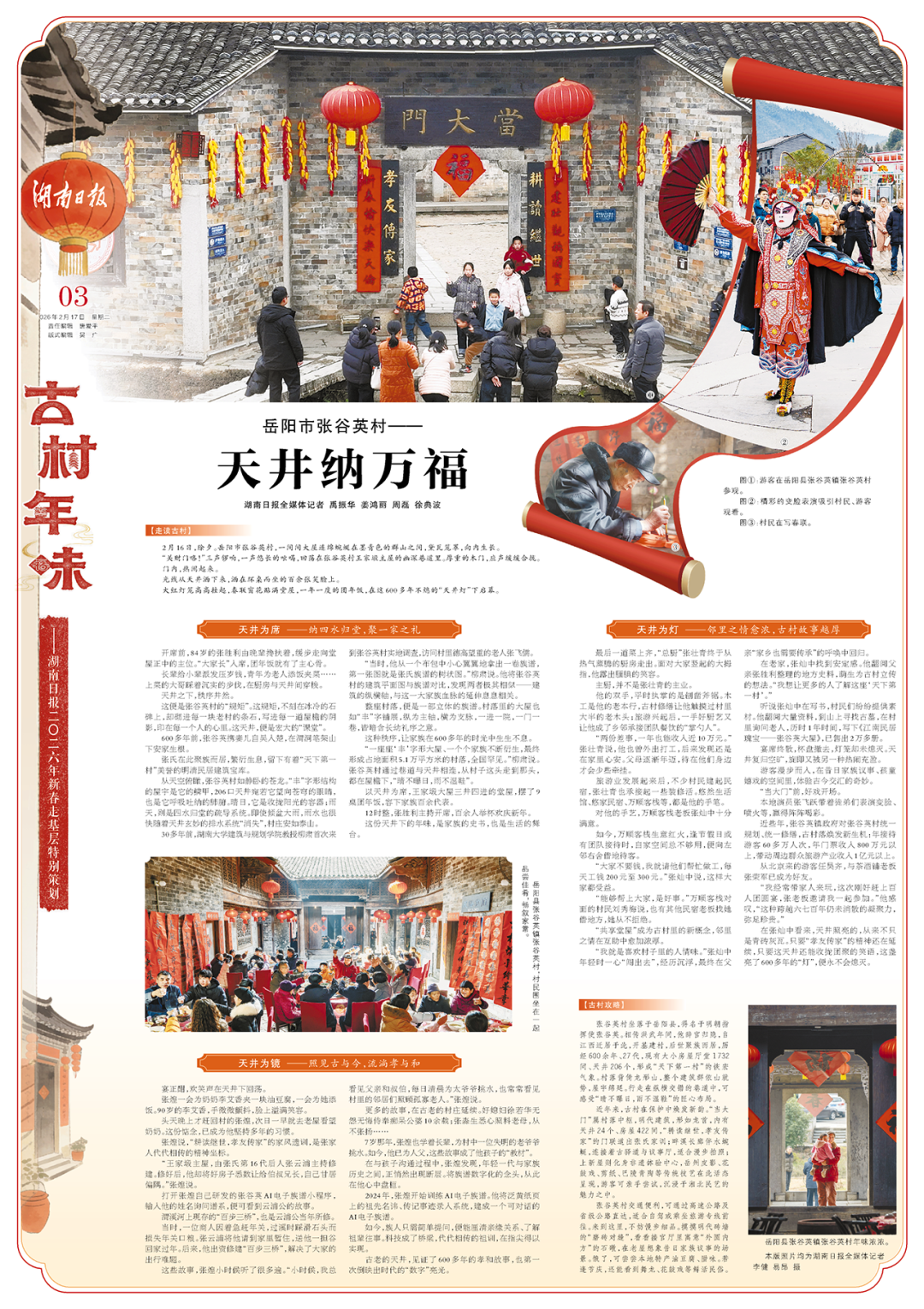 《古村年味——湖南日报二〇二六年新春走基层特别策划》以 “每天一村,每日一味” 的叙事,让古村年味走出深巷,让文化根脉永续,为新春献上全景式湖湘年俗画卷。