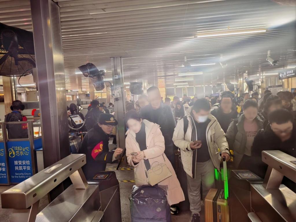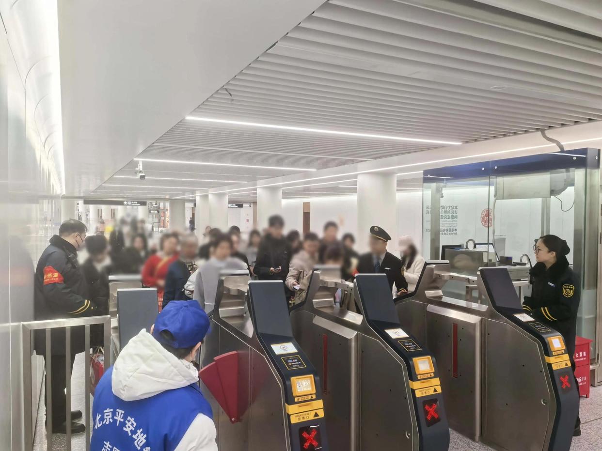 与北京站接驳的地铁2号线部分区段采取延时运营、提前开门措施。地铁北京站在进站口、换乘通道增设导流围栏和导向标识,启用全部闸机及安检通道,分区导流提升通行效率。党团员组成志愿服务队,并接收邻近车站支援人员,设置“返程服务台”,提供热水、应急药品、捆扎绳、胶带等,为老年、母婴旅客提供优先通行和行李帮扶。站内新春展板邀乘客打卡留念。