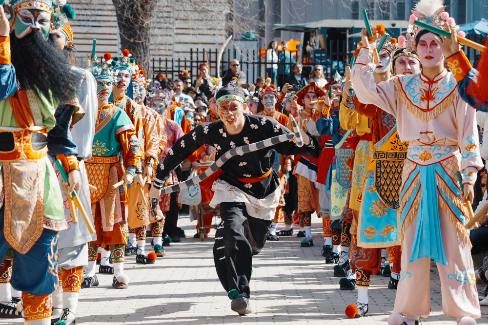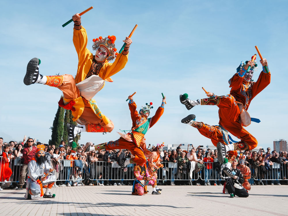 ↓2月22日,西班牙马德里举行巡游活动庆祝春节。