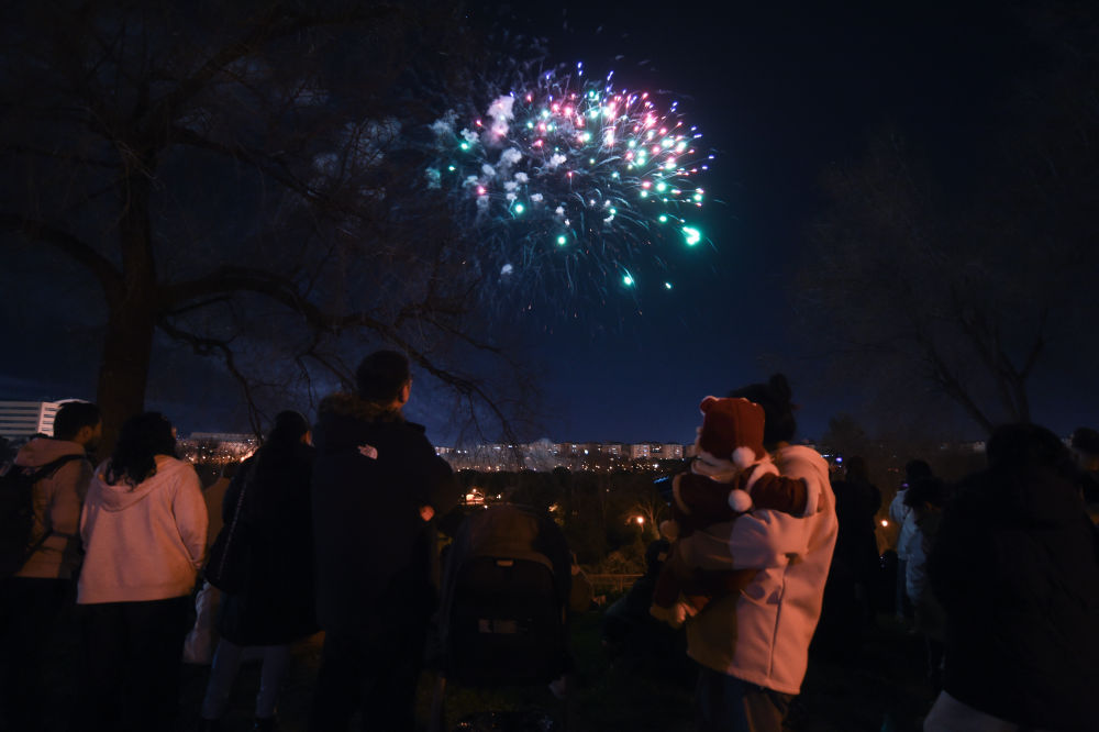 ↓2月21日晚,西班牙马德里举行春节庆祝活动,焰火在普拉多隆哥公园上空燃放。