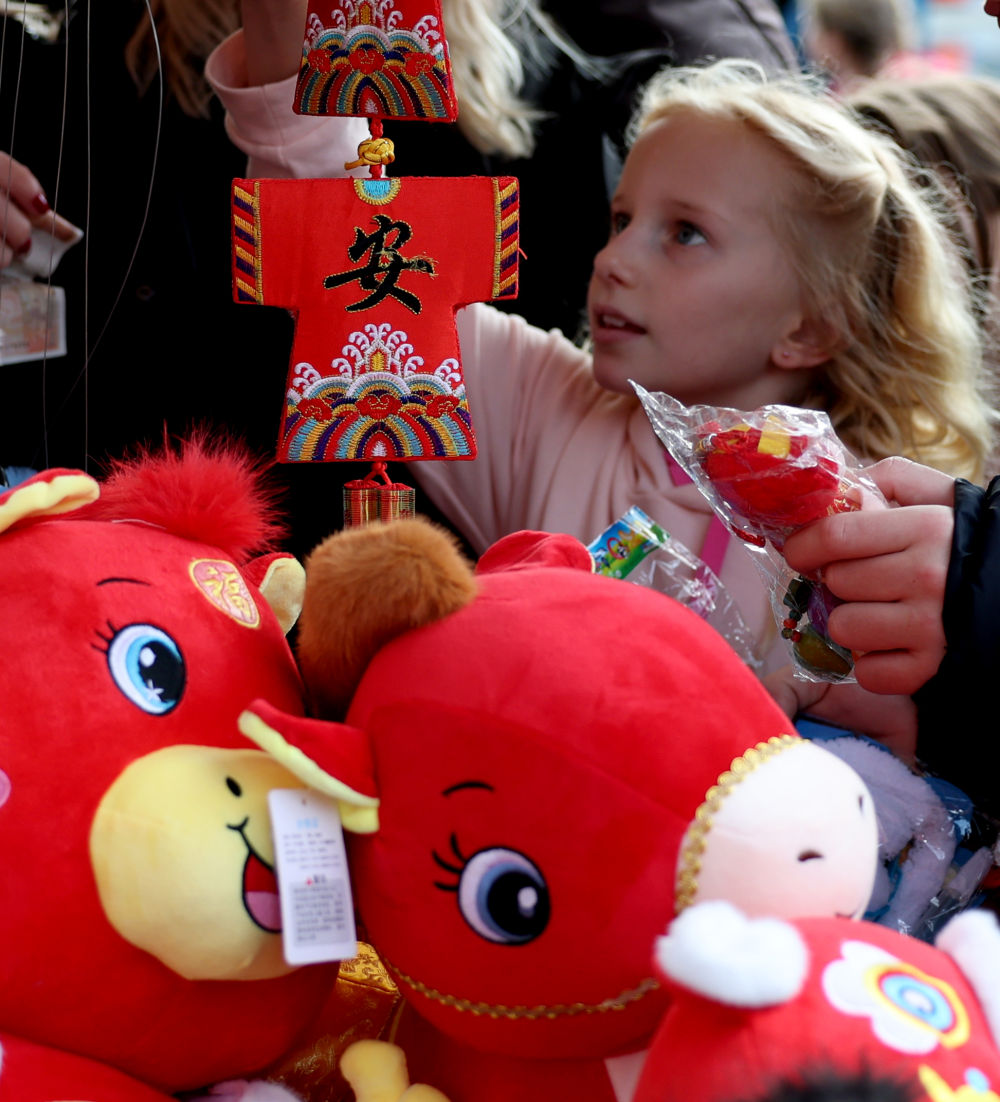 2月22日,一名女孩在英国伦敦市中心的特拉法加广场参加春节庆典。新华社记者 李颖 摄