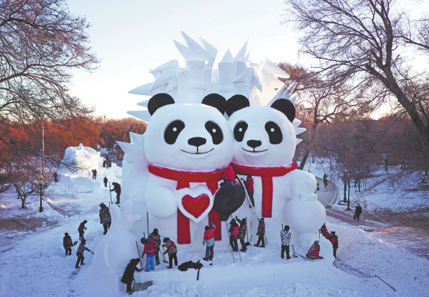 A panda-themed snow sculpture debuts at the Sun Island International Snow Sculpture Art Expo on Dec 12 in Harbin, Heilongjiang province. LI SHENG/FOR CHINA DAILY