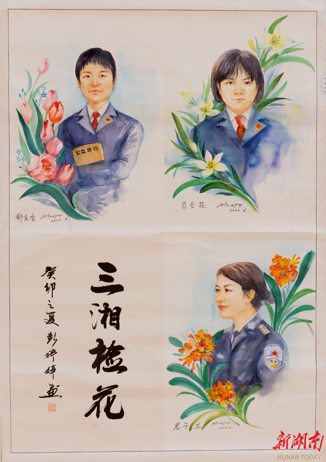 《三湘检花》(绘画),作者:彭婷婷,湖南省人民检察院机关党委三级主任科员、机关团委副书记、湖南省政法系统艺术联合会书画美术分会副秘书长、湖南检察机关文学艺术联合会书法美术分会副主任。