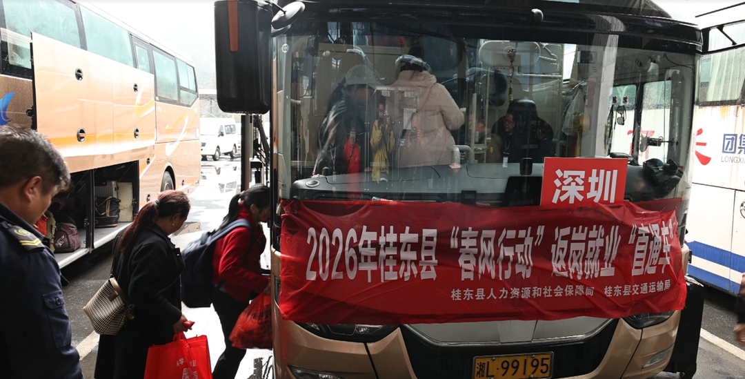 为切实做好春节后返岗就业服务保障工作,助力桂东县外出务工人员安全、便捷、顺畅返岗就业,桂东县人社局、交通运输局联合相关部门单位,精准统筹运力、优化出行服务,于2月24日(正月初八)、2月25日(正月初九)、2月26日(正月初十)、3月4日(正月十六)分批次开通“返岗就业直通车”,直达广东东莞、深圳等地,为务工人员提供“点对点、一站式”免费乘车输送服务。