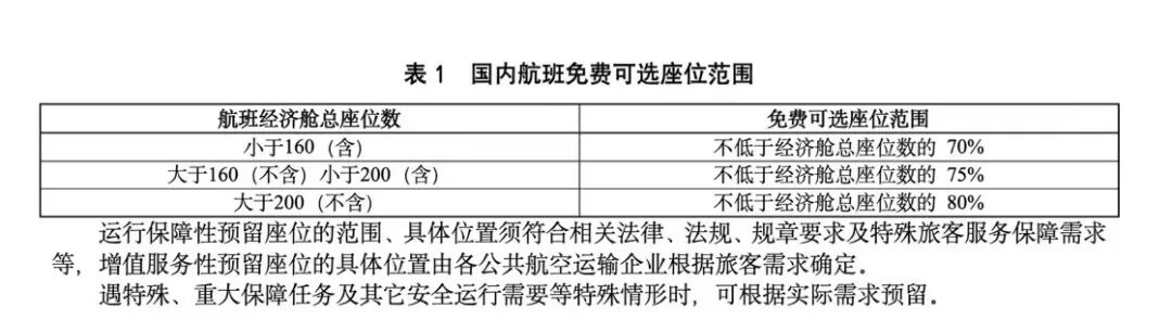 《公共航空运输企业航班预留座位规则(征求意见稿)》对国内航班免费可选座位比例做出规定。