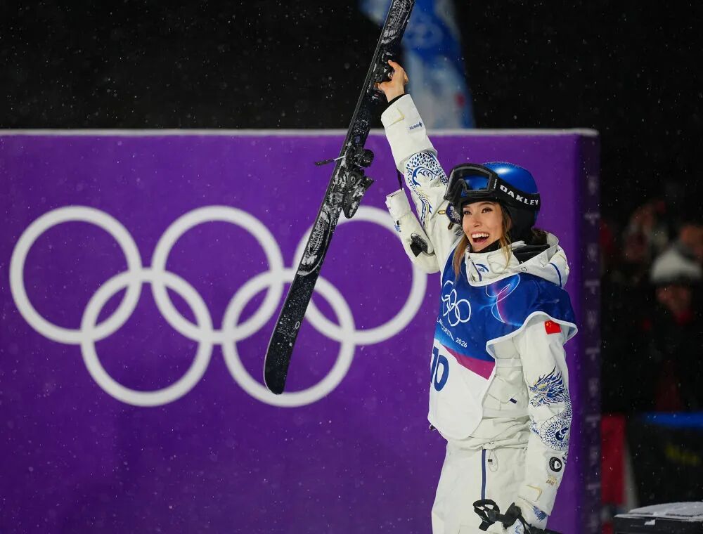 2月16日,中国选手谷爱凌在比赛后庆祝。新华社记者 胡超 摄灯光熄灭,大幕落下
